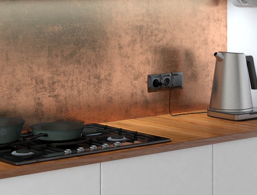 Gdy zaplanujemy gniazda dla stałych kuchennych urządzeń, pomyślmy o tych nad blatami. Powinny one znajdować się co najmniej 10 cm od blatu, aby można było ich swobodnie używać. Takich gniazdek elektrycznych powinno być więcej, niż nam się zazwyczaj wydaje. Jedno osobne dla czajnika i kolejne, jeśli używasz ekspresu do kawy. Co najmniej dwa dla blendera, tostera, robota kuchennego, mikrofalówki, albo po prostu radia. Nie jesteś pewien co do prawidłowej ilości? Do swojej szacunkowej liczby dodaj jedno gniazdo, na pewno Ci się przyda.