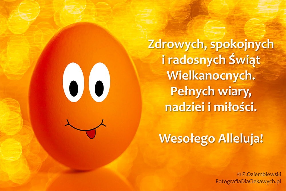 Niech te Święta Wielkanocne przepełnione będą pokojem, miłością i odpoczynkiem w gronie najbliższych. Życzę Ci, aby radosny dzień Zmartwychwstania Pańskiego przyniósł nadzieję, a budząca się do życia natura była inspiracją w codziennym życiu. Dobrego światła, umiejętności dostrzegania piękna, spokoju ducha oraz wewnętrznej siły. Wesołego Alleluja!